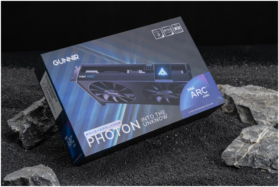 说到独立显卡,不少玩家印象中只有A/N两家,但实际上早在1998年,处理器界的领军者Intel就曾经发布过一款i740独立显卡,以不错的性价比赢得了不少游戏玩家的青睐。不过,后来Intel将重心放在了集显的开发上,从一开始的主板芯片集成显卡到现在的处理器内置核显,可以说将内置显卡做到了极致。当然,Intel并没有放弃GPU的研发,从随第11代酷睿出场的Xe-LP架构,到今年3月30日在移动平台首发的Xe-HPG架构,已经可以看到Intel在独显方面的布局正在有条不紊地进行着。而现在,基于Xe-HPG架构的Intel桌面独显终于正式登场了,率先露面的正是与GUNNIR(蓝戟)合作打造的Intel ARC A380 Photon 6G OC显卡。