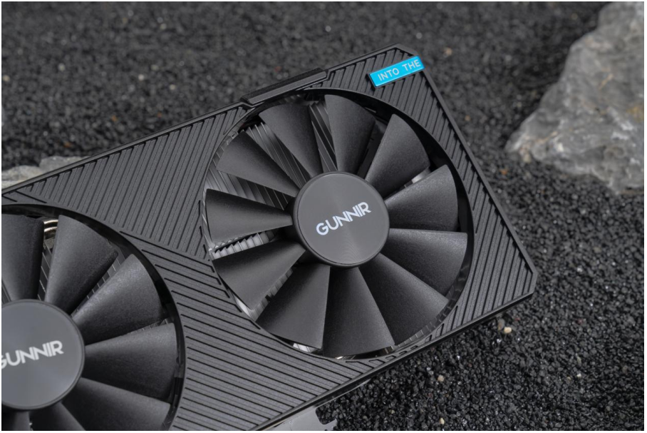 蓝戟GUNNIR A380 Photon 采用了方正的“BOX”外观设计,突出复古与工业元素的交融,让显卡回归“BOX”的本质,整体观感简洁而富有科技感。显卡风扇罩上斜纹的采用延伸了视觉的边界,同时配合全金属背板给人非常坚固耐用的感觉。作为游戏显卡,蓝戟GUNNIR A380 Photon当然也少不了灯效的运用,不过它的灯效设计并不浮夸,顶部由GUNNIR自研Blues芯片控制的LOGO灯甚至还包含了故障侦测的功能,正常工作时是蓝色呼吸效果,外接电源故障时会闪烁红光、主板出现异常则会闪烁黄光,方便玩家快速排除故障。在LOGO灯旁边,可以看到显卡还提供了8Pin供电插座,本来锐炫A380的TDP只有75W,主板PCIe供电是完全足够的,但蓝戟GUNNIR A380 Photon将GPU加速频率提升到了2450MHz,性能相比公版进一步升级,加上板载6GB GDDR6显存,整卡功率也来到了100W左右,于是也就加装了外接供电插座以保证供电达标。