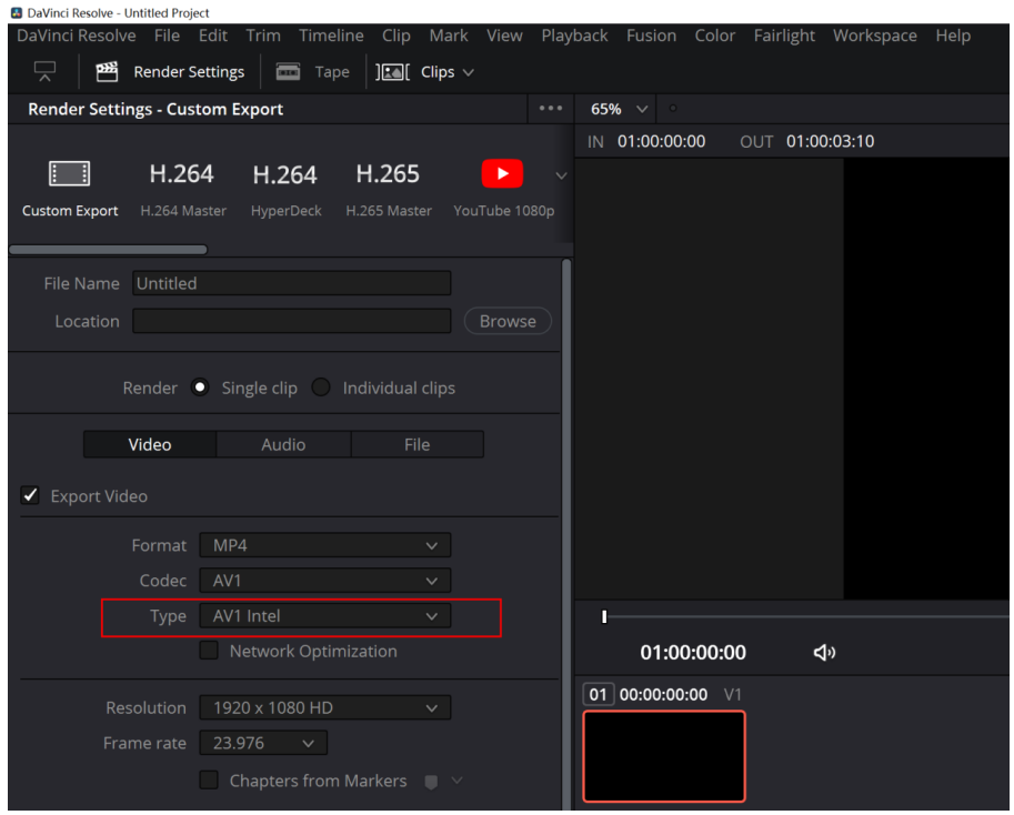 虽说是针对主流玩家的千元级显卡,锐炫A380一样配备了主流的硬件视频编解码器,对于有视频剪辑需求的用户来说非常实用,这一点就比一些砍掉编解码器的同价位竞品厚道。而且,AV1硬件编码是个特别抢眼的规格,它相比常用的H.264编码体积更小,被越来越多的视频网站所采用。在DaVinci Resolve中即可选择Intel专属的AV1硬件编码,从而获得更高的编码效率。