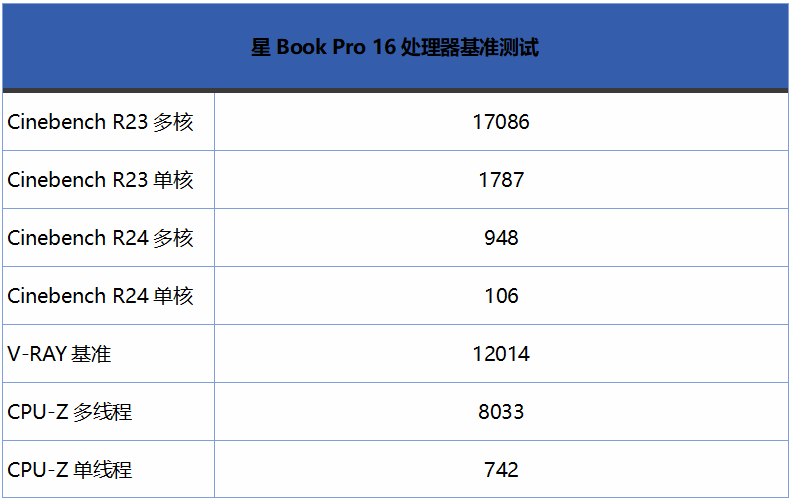 在性能模式下,星Book Pro 16有70W左右的爆发功率(持续时间可达数分钟)。Cinebench R23是大家最为熟悉的CPU基准跑分测试项目之一,该机的多核分数是17086,单核分数是1787,这个表现很不错,所有的日常应用,包括上网看视频、Office办公应用、编程、Ps图片处理等等都可以轻松搞定,且偶尔的专业应用也可胜任,比如学习3D渲染、短视频剪辑等等——毕竟核心线程数量足够,且功率输出较高。
