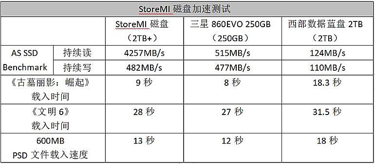 B450相对于B350还增加了对AMD StoreMI技术的支持,而这项技术之前只有定位旗舰的X470才支持,现在相当于是下放到了主流AM4平台上。此项技术的功能就是可以使用2GB内存、256GB固态硬盘和2TB机械硬盘组建“混合硬盘”,从而同时拥有机械硬盘的超大容量和接近固态硬盘的响应速度(StoreMI会智能识别用户常用数据,将其放置在固态硬盘存储区域,从而实现快速响应)。