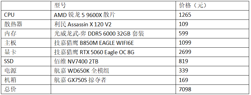 CPU还是选择了锐龙5 9600X,其采用4nm Zen5架构,在Zen4架构基础上进一步提升了IPC和能效比。采用单CCD内置6个全规格大核,最高加速频率5.4GHz,拥有32MB三级缓存,从我们的实际测试来看,在大部分游戏中可以稳压酷睿Ultra 9 285K一筹,再结合1200多元的售价,性价比着实出色。