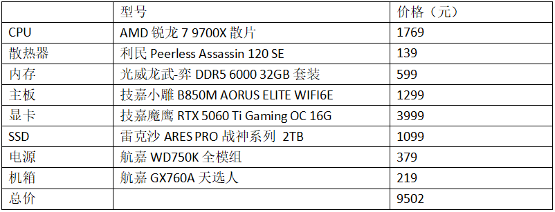 锐龙7 9700X拥有8个Zen5全规格大核,拥有16线程,采用4nm工艺,最高加速频率高达5.5GHz,还有32MB三级缓存。虽说CPU主要规格和上代锐龙7 7700X相当,但凭借全新的4nm Zen5架构以及更高的频率,无论是在游戏还是生产力应用中都有更好的表现。虽说锐龙X3D处理器游戏性能表现着实亮眼,但是对学生装机来说,小狮子并不推荐。毕竟锐龙7 9700X已经能满足绝大多数游戏的需求,价格还要便宜好几百元,更适合追求经济实用的学生群体。