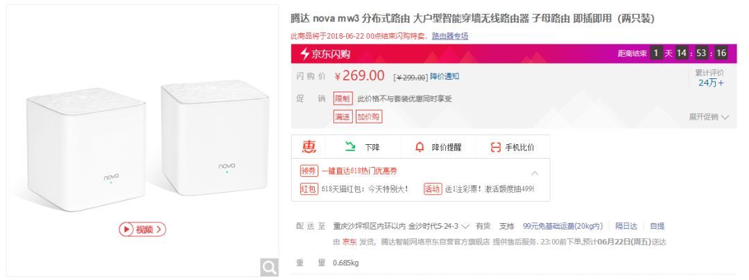 需要注意的是,用现有无线路由器无法组建Mesh网络,用户只能新买。作为一类新产品,分体式无线路由器刚上市时的价格着实不便宜,像网件、Linksys这些品牌的产品都是千元起。比如网件最低端的Orbi Mini RBK30都要1499元,还只能覆盖2~3个房间。好在很多国内品牌已经跟进,最便宜的像腾达 nova mw3仅需269元就能到手,可以说价格已经比较实惠了,价格已经不是问题了。
