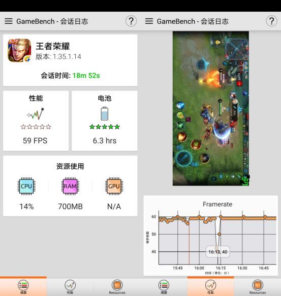 很明显,这款游戏对手机性能要求并不是非常高,升级前后的平均帧数都是59fps,就实际体验而言,在游戏进行中几乎体验不到卡顿。