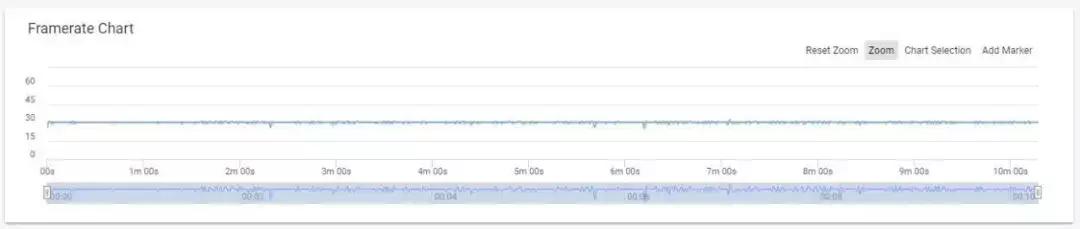 波浪线代表《绝地求生 刺激战场》在高清画质时的帧率波动情况,当锁定在高清画质的30fps时,波动几乎可以忽略不计