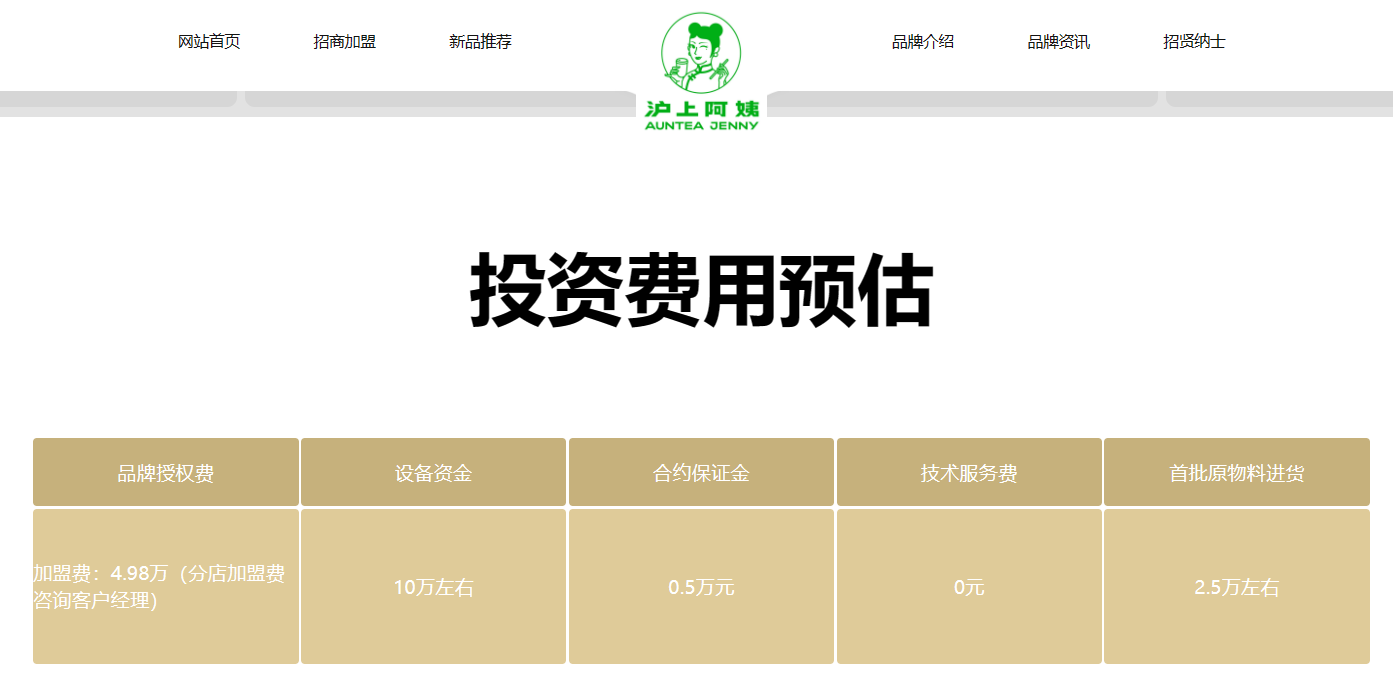 (沪上阿姨加盟投资费用)