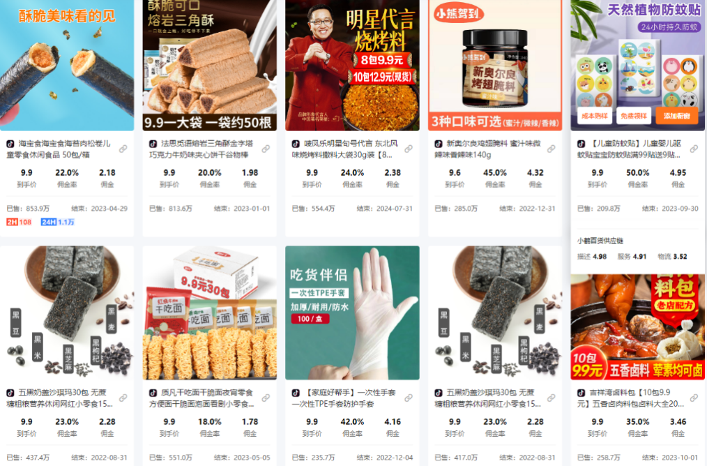 除此之外,锌刻度在选品平台的9.9元福利区发现,其实9.9元商品的佣金并不像想象的那样低,甚至大多佣金率都保持在20%至30%之间。具体来看,9.9元50包的海苔肉松卷佣金2.18元,佣金率22%;唛凤乐东北烤料30g大袋装8包入,佣金2.23元,佣金率24%;吉祥湾卤料包10包装,佣金3.46元,佣金率35%;新奥尔良鸡翅腌料140g,佣金4.32元,佣金率45%……