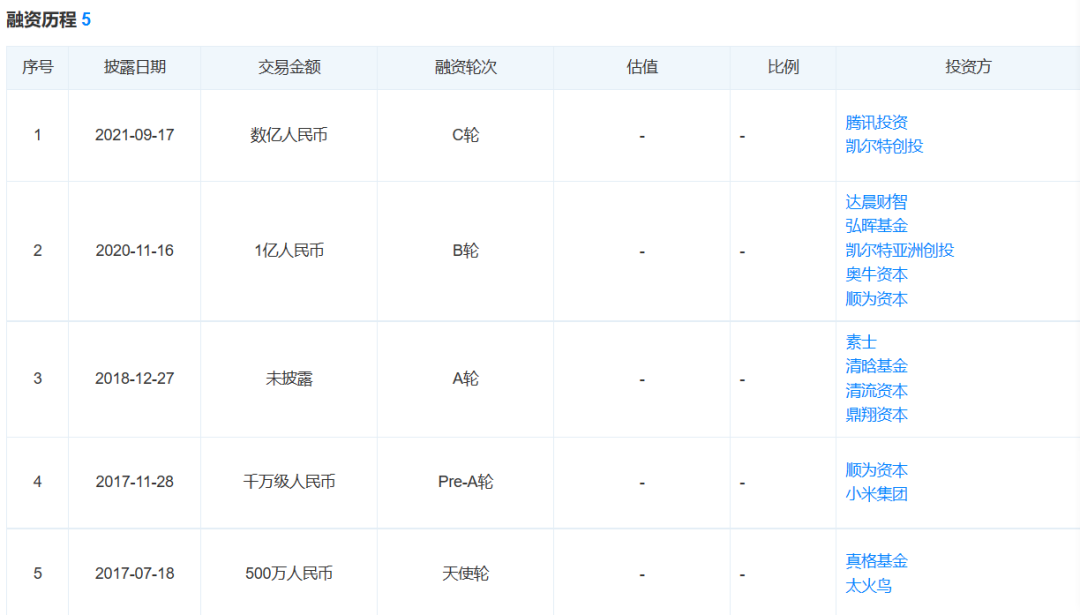 (AMIRO觅光的融资历程 图片来源:天眼查)