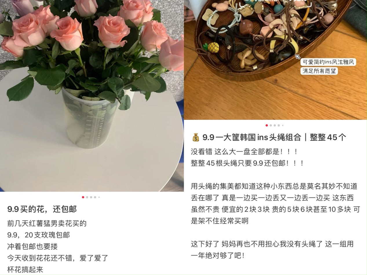 (小红书上关于9.9包邮消费的分享笔记)