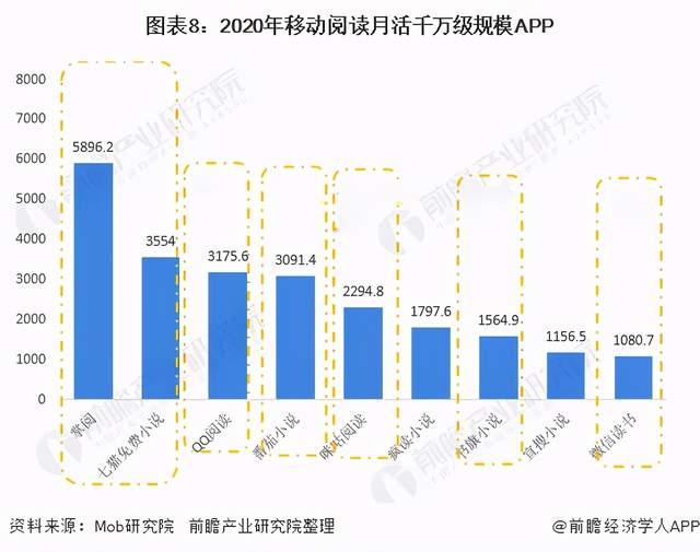 并且,在整个网文行业月活排行榜中,免费阅读APP的表现也更好。2020年12月,月活千万级以上的APP中,前两名都主打免费,分别是月活6162万的番茄免费小说、5434万的七猫免费小说。