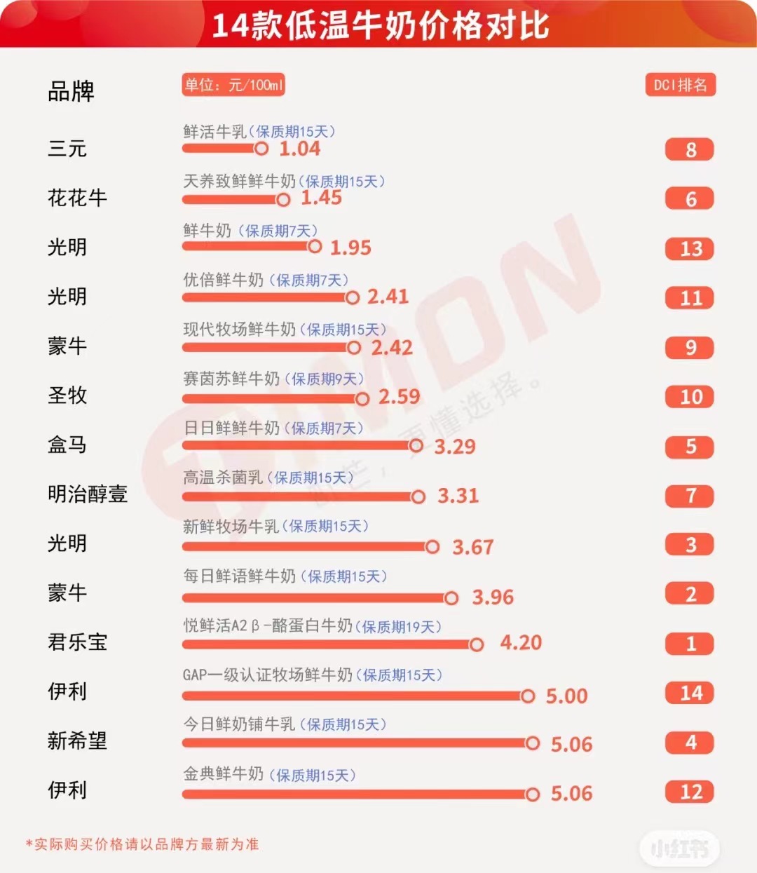不过,也正因这样的市场教育,消费者对低温奶的时效性和成分有了更高的要求。锌刻度留意到,在小红书等平台,已经出现了许多关于低温奶产品的测评,其中不乏对杀菌工艺、活性物质、性价比、运输时效的详细对比。而针对不同的消费场景也有不同的测评维度,比如配合咖啡使用的牛奶,则有相应的“适合什么豆子”、“是否适合做拿铁”等测评内容。