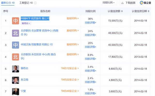 据爱企查显示,联想控股为联想集团的母公司,中国科学院控股有限公司为第一大股东,持股比例为36%,柳传志持有比例为3.4%。