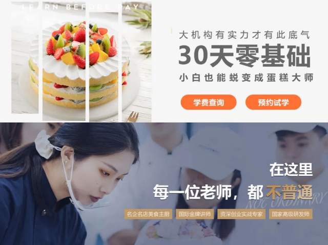 锌刻度在熳点教育的官网上看到,其广告语展现出了充分的自信。“大机构有实力才有此底气,30天零基础班,小白也能蜕变成蛋糕大师”、“专业西点烘焙培训,培养实战型烘焙人才”。