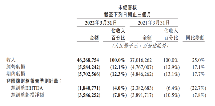 市场预估净亏损为45.9亿元人民币,去年同期净亏损为38.92亿元人民币,实际净亏损为35.86亿元人民币。