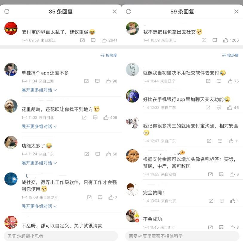 但支付宝的兴趣社交则与之不同,在没有了游戏与公益的功能性之后,兴趣社交的目的变得更加直接,那么用户在使用这一功能时就会考量更多。一来,支付宝的用户究竟有多少兴趣社交的需求?二来,即便是有兴趣社交需求的用户,为什么会选择在支付宝这一支付工具上实现这一需求?