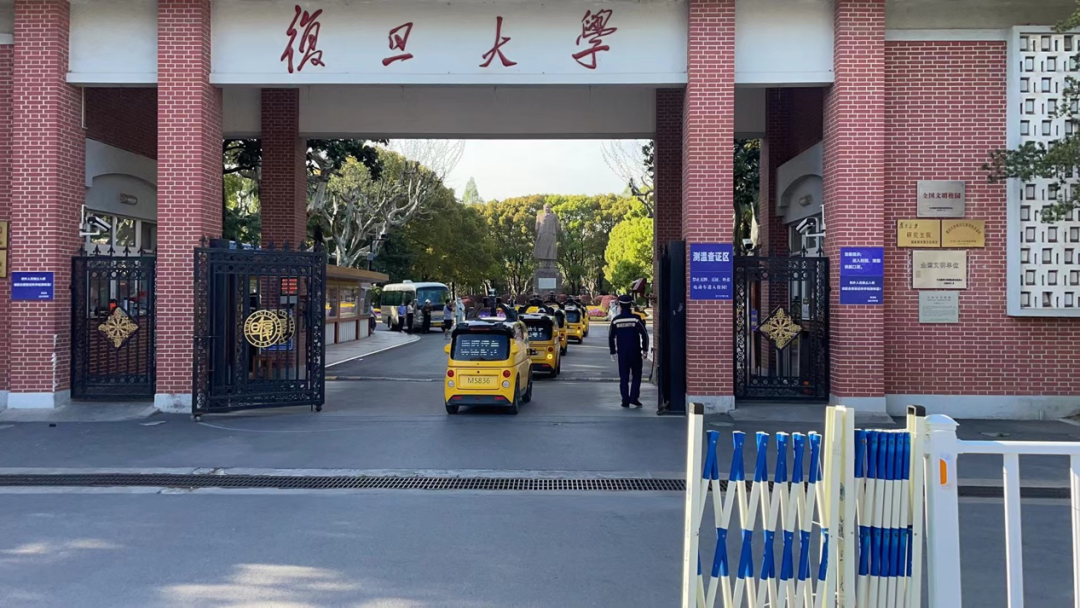 自动配送车开进复旦大学为师生们配送餐食(吴用 摄)
