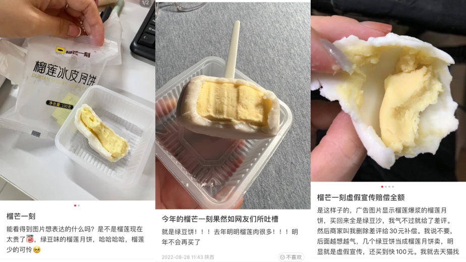 (消费者吐槽榴芒一刻榴莲冰皮月饼)