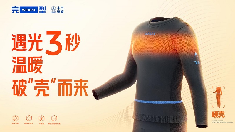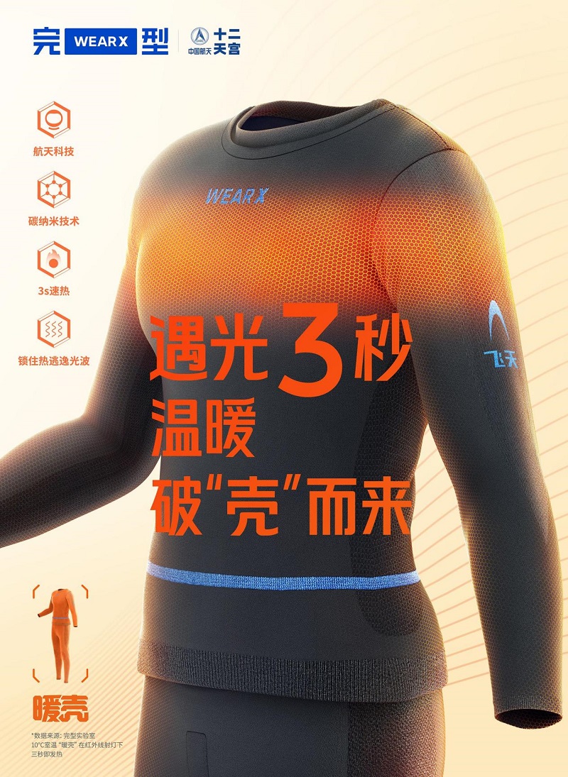 为了向中国航天致敬,完型品牌推出了中国航天联名“飞天”暖壳系列保暖内衣。