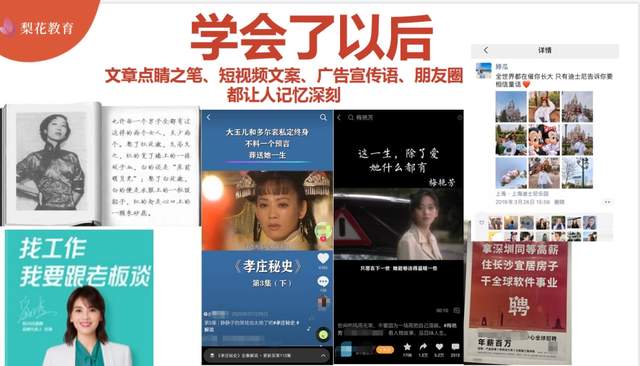 其一当然是大众认知度较高的热门行业,比如影视后期、直播带货、个人IP等,基本都是与当下最主流的短视频靠边的技能课程。培训班紧跟时代浪潮开发相关课程的最大好处,或许就是不用过多对学员渲染学习过后的好处。