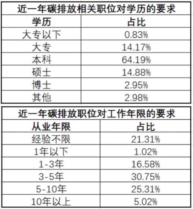 再来看最近风很大的碳排放管理师,它们广泛宣传的“不限专业、不限学历”到底有多不靠谱,从猎聘给出的实际应聘门槛就能看出来:有碳排放人才需求的企业基本覆盖了各类企业性质及企业规模,从这些企业发布的职位来看,要求本科学历的职位占比最多,为64.19%;从需求企业对碳排放相关职位的从业年限要求来看,要求工作年薪为3~5年的职位占比最多,为30.75%。