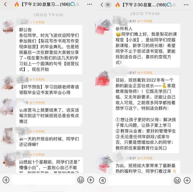 十方教育的“5天写作变现培训体验课”在结束2天后,变成了“家庭教育指导师”课程培训