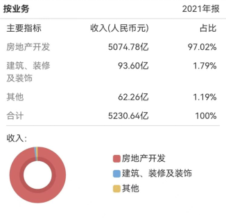 虽然下了重注,效果却一言难尽,2021年碧桂园的营业收入,97.02%为房地产开发,1.79%为建筑、装修及装饰,1.19%为物业投资、酒店经营及机器人等业务。