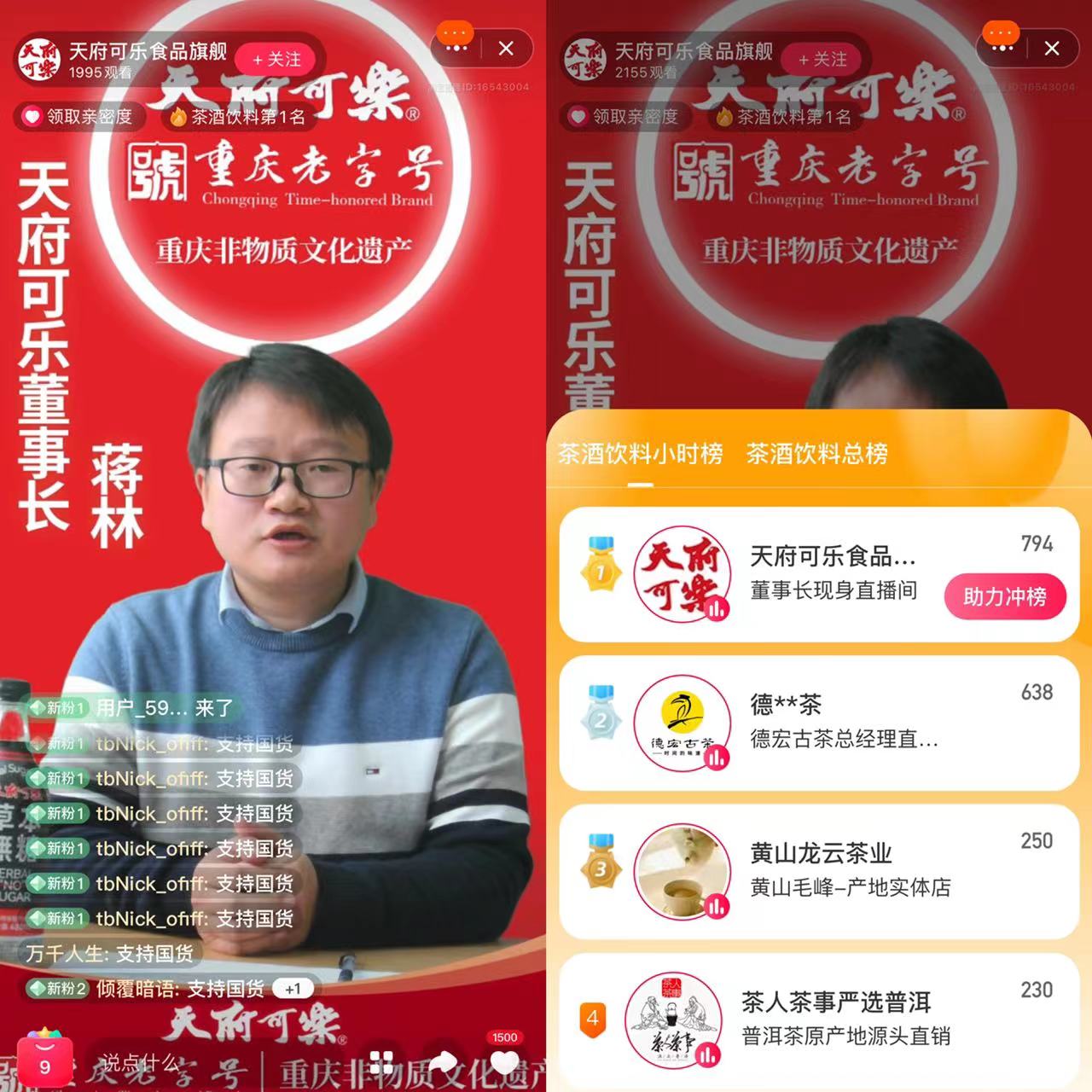 第二天,天府可乐董事长蒋林现身淘宝直播间,面向所有消费者澄清了天府可乐破产的谣言。在呼吁大家不要过度囤货的同时,他也坦言“大家的野性消费在关键时刻能够救命”。