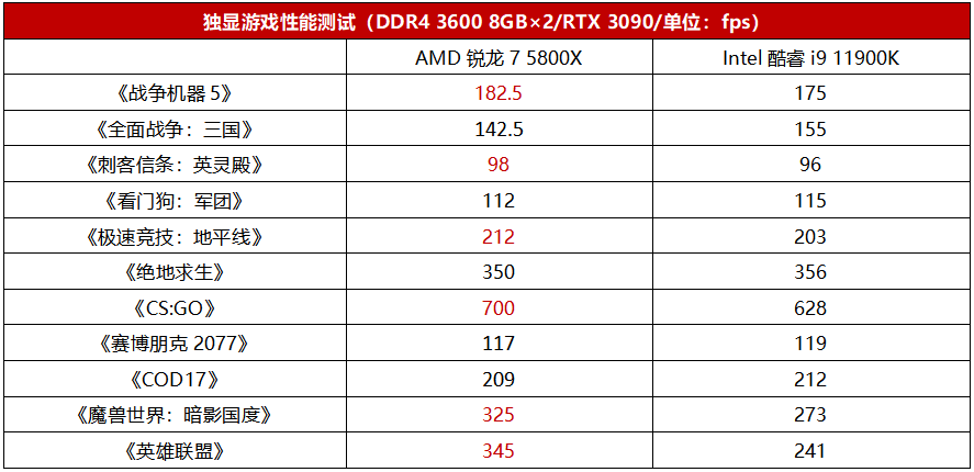 同时虽说酷睿i9 11900K频率更高,但是锐龙7 5800X的IPC性能更强,足以抵消其在频率上的劣势,单核性能上并不吃亏。根据我们之前做过测试,在当下的热门游戏当中,两款处理器的表现只能算是旗鼓相当。所以综合来看,锐龙7 5800X在多核性能上有明显的领先的同时,单核性能上也不吃亏,所以其综合性能是优于酷睿i9 11900K的,最强8核称号自然是落到锐龙7 5800X的头上。