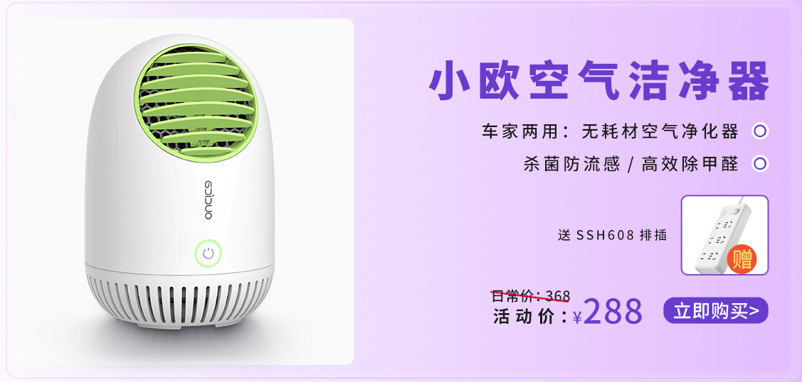 每个季节都有不同的空气污染来源,新房、新车污染物较多,要想呼吸到新鲜空气,我们任何时候都不能松懈。相信不少用户也想趁着618期间购买一款好用的空气洁净器,欧思嘉产品不光打折还有好礼相送,你可千万别错过。