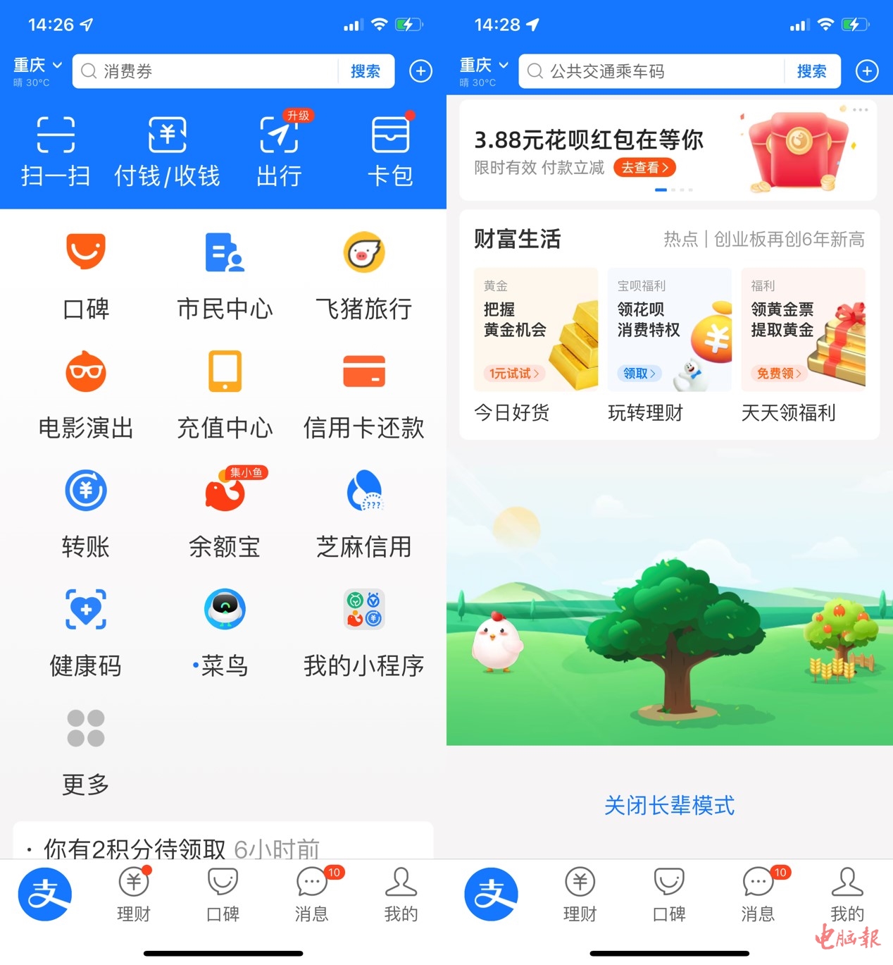 支付宝:长辈模式只有首页好用