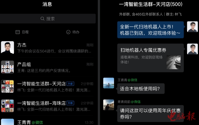 此外,企业微信手机端还支持了“深色模式”和“切换企业”入口,多种措施提升用户使用体验。