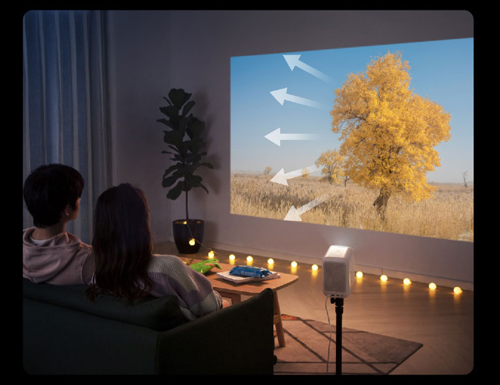 那么除了出色的画质与品质之外,小明Q1 Pro还自带多种自动调节功能。只要开机,它就能完成自动对焦,接着还有全向自动梯形校正功能,用户在观影时,根本无需动手操作,只需要坐好,开机,剩下的交给小明Q1 Pro。