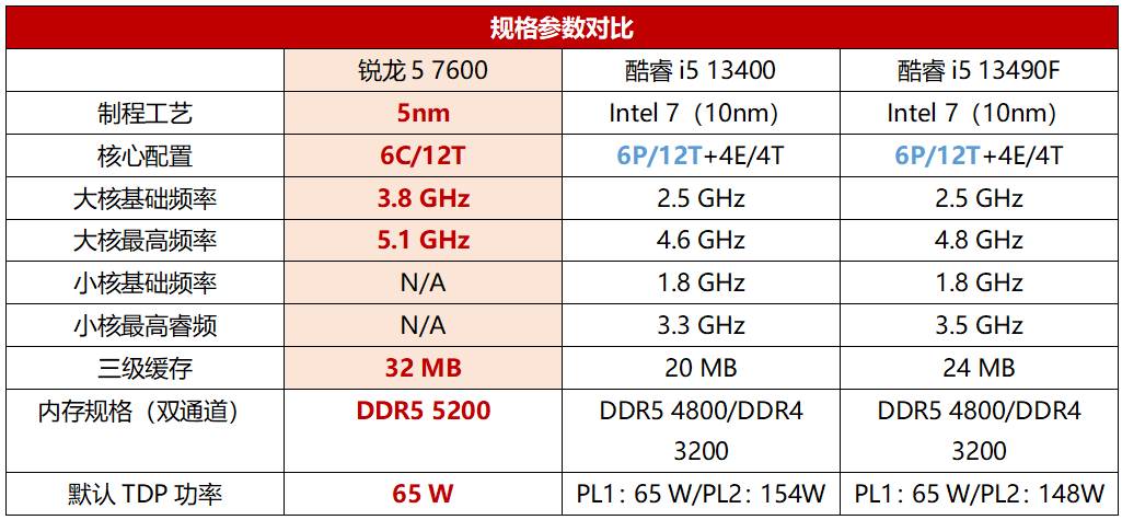 总体来说,拥有全6个大核锐龙5 7600在核心配置上不吃亏,而且兼容性更好,凭借着更高的频率和更大的缓存,在规格的对比上可以说是实现了全方位的领先。