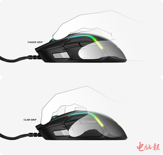 Rival 5 游戏鼠标汇聚赛睿多年来鼠标人体工学经验积累,趴式,抓式,捏式,无论您倾向于使用何种姿势握持鼠标,Rival 5均能为您带来稳定舒适的握持体验。让您在操作鼠标时感受到如臂使指般的自如。