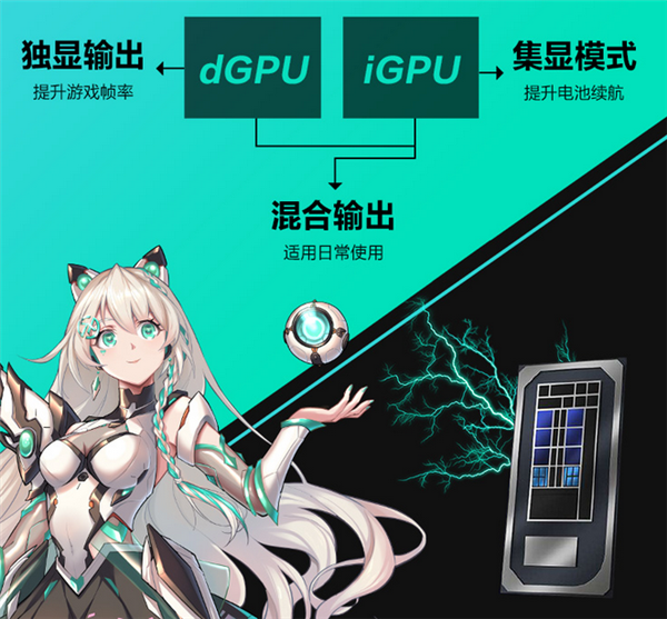 值得一提的是,今年的ROG游戏本全系支持双显三模显卡切换技术,在游戏时可以切换到独显输出模式,进而提升游戏场景的内存效能,减少延迟并提升帧率。在低负载时又可以切换到混合模式或者集显模式,进一步延长笔记本的电池续航时间。