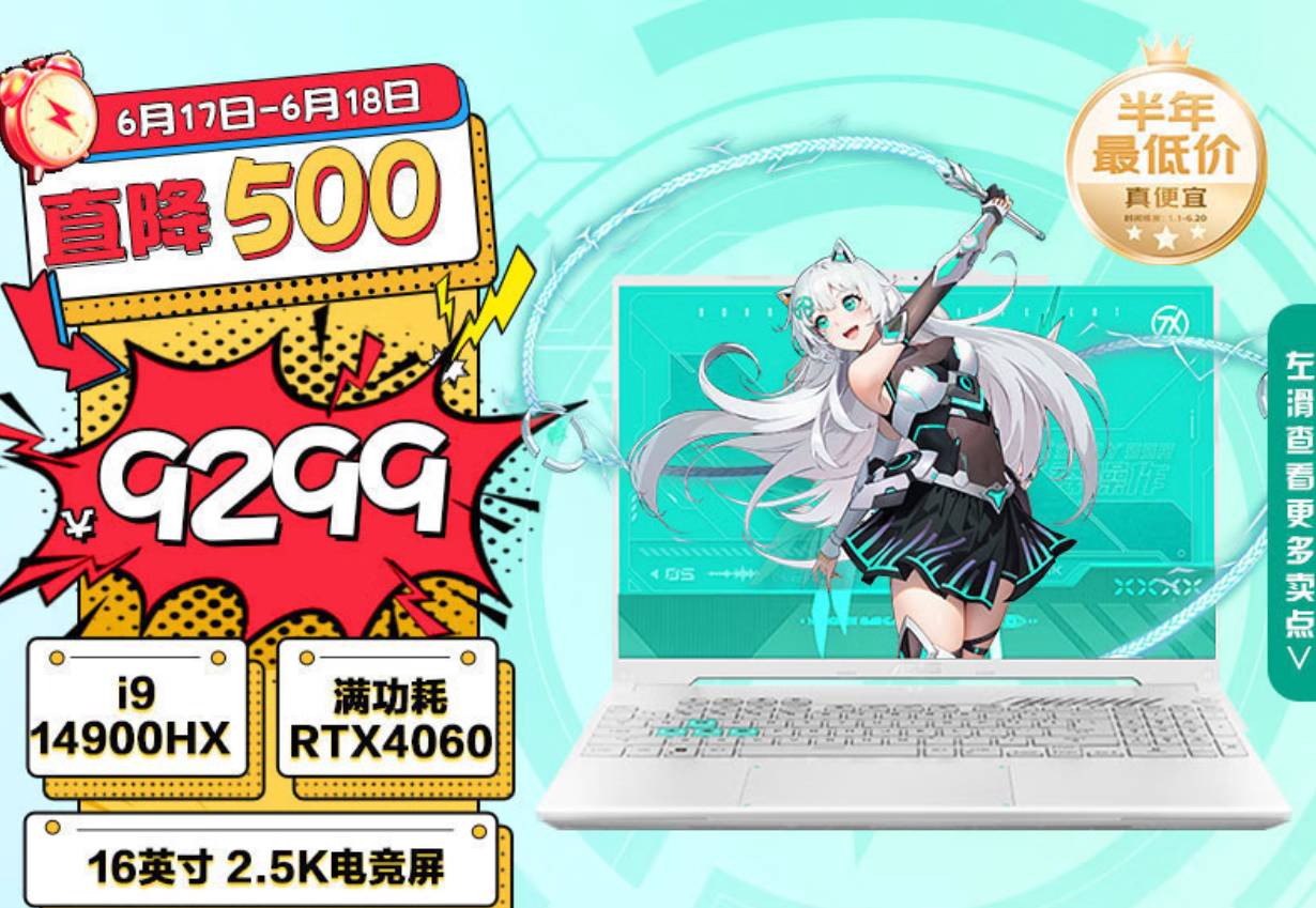 作为主流价位中经久不衰的热门游戏本,天选5 Pro在优化了屏幕边框设计之后颜值更漂亮了,而独有的青白配色二次元潮玩机身更是极有吸引力,2.2kg左右的重量也比较轻便,它的机身设计和造型的确无可挑剔。同时14900HX+RTX 4060性能表现不错,有2.5K高刷电竞屏,功能全面,PD充电、双显三模都有,性能模式调校科学好用。另外,价格“卡位”也很精准。所以,如果你的预算在9000元左右想买一台各方面均衡且靠谱的顶级处理器游戏本,那么天选5 Pro称得上是这个价位的最佳选择之一。