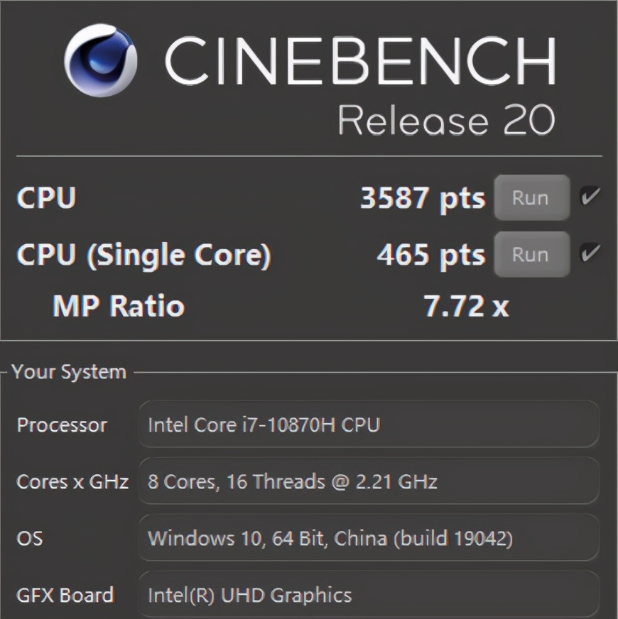 ■处理器:英特尔i7 10870H(8/16,2.2/5GHz)