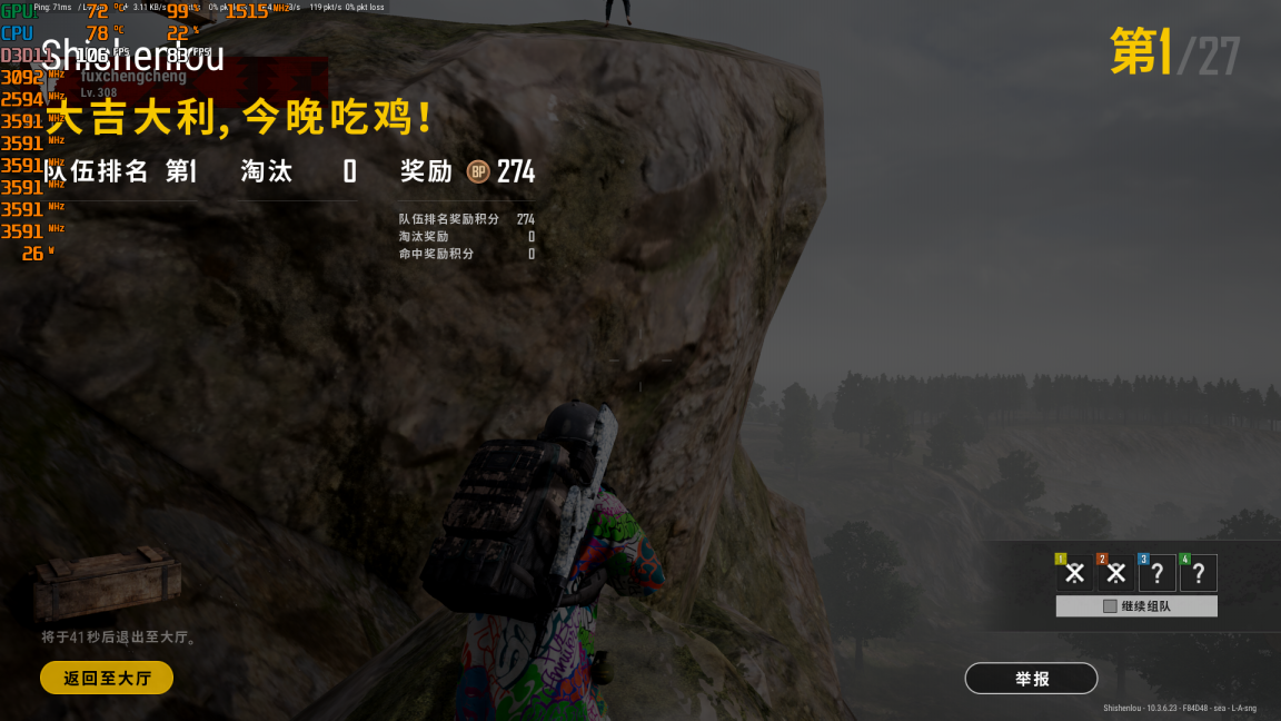 ▲要求较高的电竞游戏《PUBG》,设置为FHD预设高画质,牛叔在游戏刚开始没多久就躺地上了,然后继续观战队友,最后一局下来,队友成功带领躺地上的牛叔吃鸡,游戏平均帧速达到了80fps以上,流畅度不错。