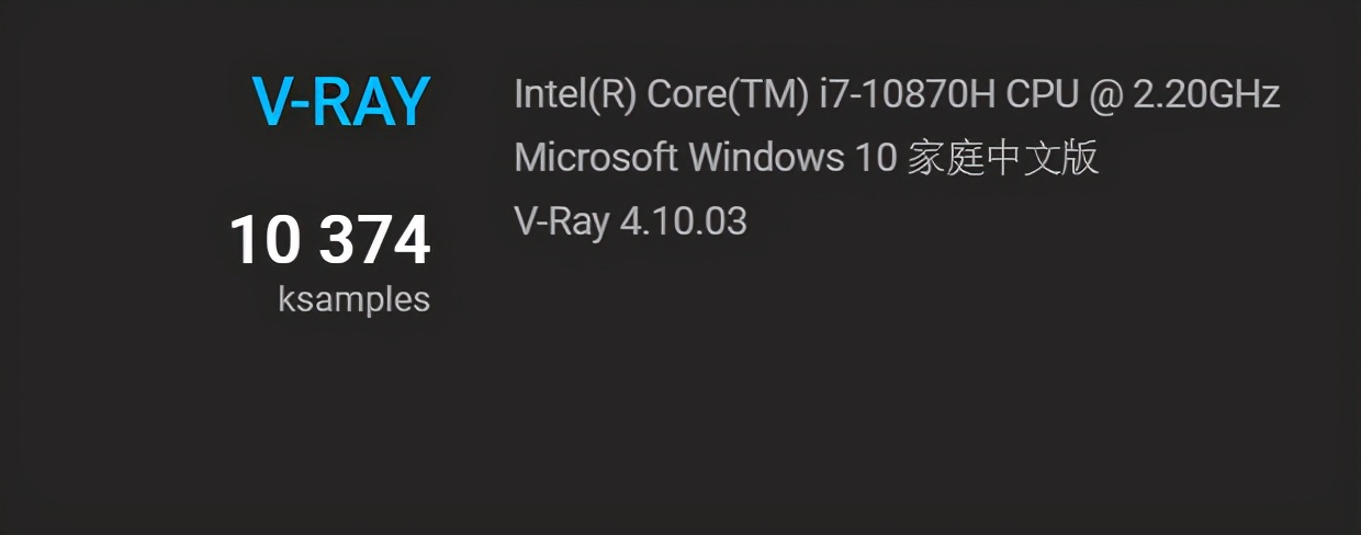 ▲V-RAY基准测试,该项目主要考察笔记本处理器的多核性能情况,分数越高代表性能释放越强。将星X15的处理器分数为10374,而62W的6核i7 10750H处理器的得分为8502。