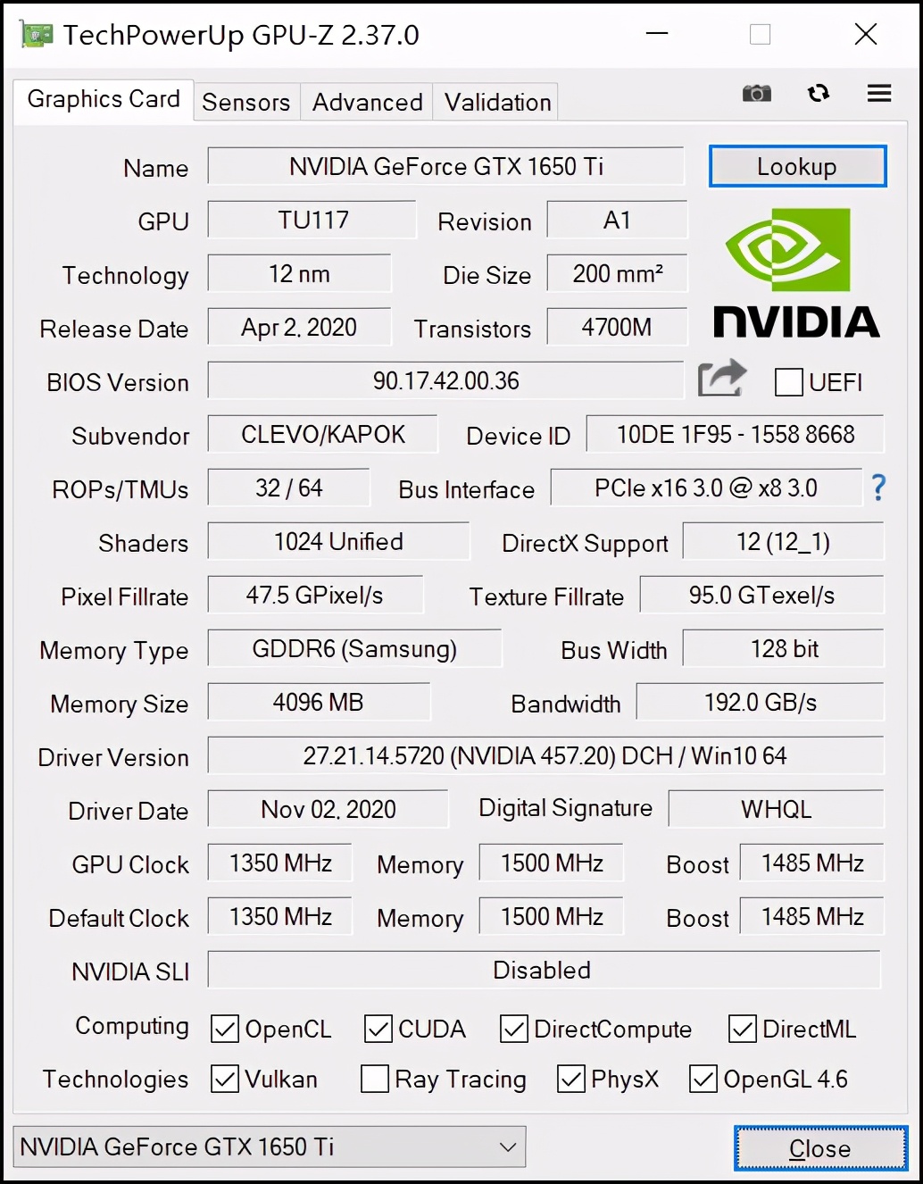 ■显卡:NVIDIA GeForce GTX 1650Ti(50W)