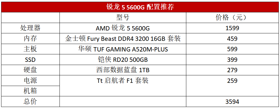 综上所述,锐龙5 5600G在核显性能、处理器多线程性能强于对手的前提下,装机成本反而明显更低。目前打造一套基于锐龙5 5600G的中端核显游戏主机3600元不到即可拿下,要是选择竞品,价格则要将近5000元了。所以锐龙5 5600G就是中端整合平台的首选。
