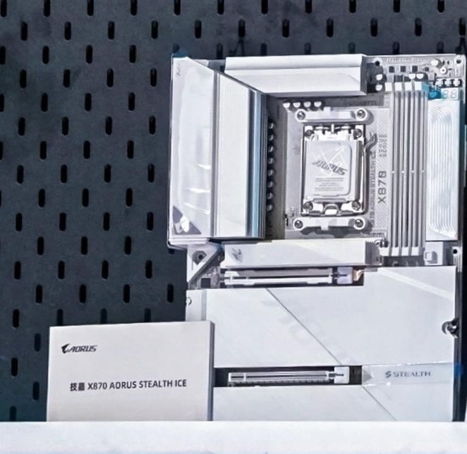 技嘉X870E AORUS PRO ICE电竞冰雕保持了雕族一贯的冷酷电竞风外观,纯白的外观极具辨识度。供电方面,主板搭载了16+2+2相供电模组,足以应付锐龙9000旗舰处理器的极限供电需求。内存方面,主板提供四条DDR5插槽,可支持DDR5 8000+MT/s内存频率,当然,主板也支持AORUS AI超频,只需轻轻一点即可释放DDR5内存的潜力。