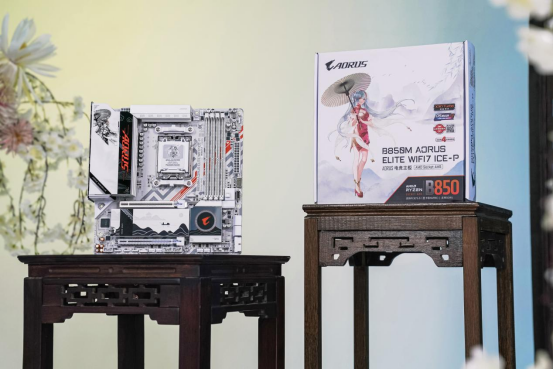 技嘉雕妹B850M A ELITE WF7 ICE-P采用全新的国风风格设计,主板上的插槽也全部使用白色器件,突出了二次元主题,整体外观极具辨识度。主板配备了14+2+2相数字供电,可以轻松满足锐龙9000旗舰处理器的供电需求,而且拥有内置热管的超大VRM散热装甲,确保满载工作时VRM元件都不会过热。主板不仅可以轻松支持DDR5 8200+ MT/s高频内存,配合技嘉独有的AI D5黑科技2.0,更是可以进一步提升内存带宽、降低延迟,为玩家提供更流畅的使用体验。
