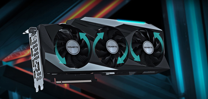 魔鹰GeForce RTX 3080 Ti GAMING OC 12G作为GAMING OC系列的发烧旗舰游戏显卡,自然也会配备技嘉专有的风之力3风扇散热系统。新版的技嘉风之力散热系统搭载了两个90mm与一个80mm特殊刀锋式风扇,配备纳米石墨烯润滑油,可以延长油封轴承风扇寿命,达到滚珠轴承风扇的水平。独特的正逆转设计消除风扇之间的气流互扰、提升气流的散热效率,散热器配备7根高性能纯铜导热管,通过超大铜质底座直接接触GPU进行导热,保证最佳的散热效果。风之力散热系统也包括风扇智能启停技术、特别设计了进气格栅(延长散热鳍片,预留散热通道),对散热效果进一步提升,配合全尺寸金属背板,形成出色的散热方案。