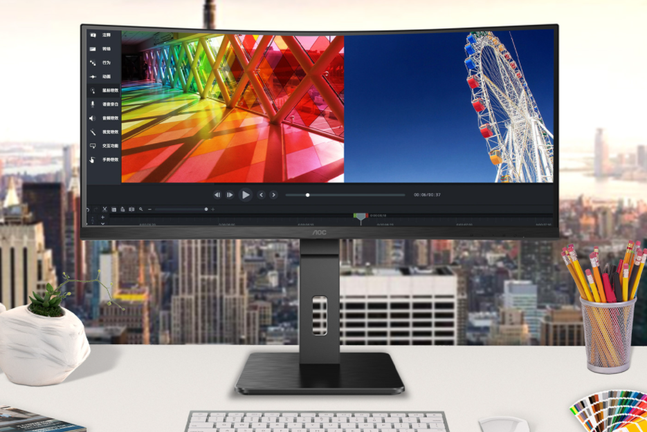 对很多显示器来说挂上商用的名号,就意味着产品要舍弃游戏、娱乐的功能,而专注于强化商务应用能力。实际上很多用户是有游戏休闲的需求,他们更想要一款全能型的商用显示器。拥有34英寸21:9屏幕的AOC CU34P2X,能显示出更多的内容,在文档处理、图片设计以及视频剪辑等应用中,工作效率更高。同时显示器的广色域、高色彩还原精准度的表现也符合准专业级用户的使用标准。