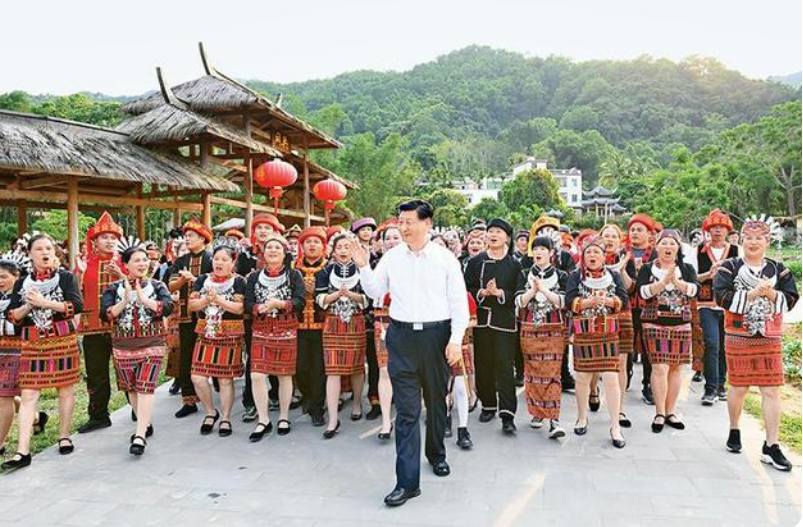 2022年4月10日至13日,中共中央总书记、国家主席、中央军委主席习近平在海南考察。这是11日下午,习近平在五指山市水满乡毛纳村向村民们挥手致意。 新华社记者 李学仁/摄