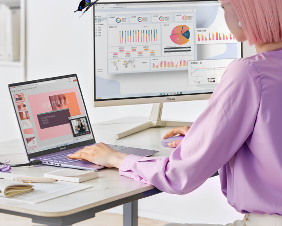 2.8K 120Hz OLED华硕好屏,覆盖100% P3广色域,支持10亿色彩显示,具备100万:1对比度,600尼特峰值亮度,支持四种专业色域切换,色准ΔE<1,尤其适合图像设计和视频编辑类工作。拥有120Hz VRR智能刷新率和0.2ms响应时间,减少画面拖影和卡顿现象,提供流畅视觉体验。采用了硬件级防蓝光,有效减少70%有害蓝光的同时画面不偏色。拥有TÜV莱茵护眼认证和SGS Eye Care护眼认证多重保障,低蓝光、无频闪,全方位守护眼睛健康。