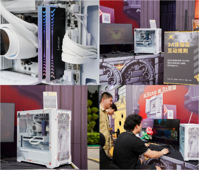 3A 游戏体验区则为观众们提供了《PUBG》等热门游戏的限时击杀挑战。AORUS定制PUBG PCL大赛主题机箱,以及AORUS板卡和雷克沙ARES战神之翼DDR5内存、带来超大缓存的AMD 锐龙 7 9800X3D 处理器构成的吃鸡电竞平台,能够快速存储和调取游戏中的各种数据,在游戏中实现精准的快速身位机动和近乎实时的射击反馈。