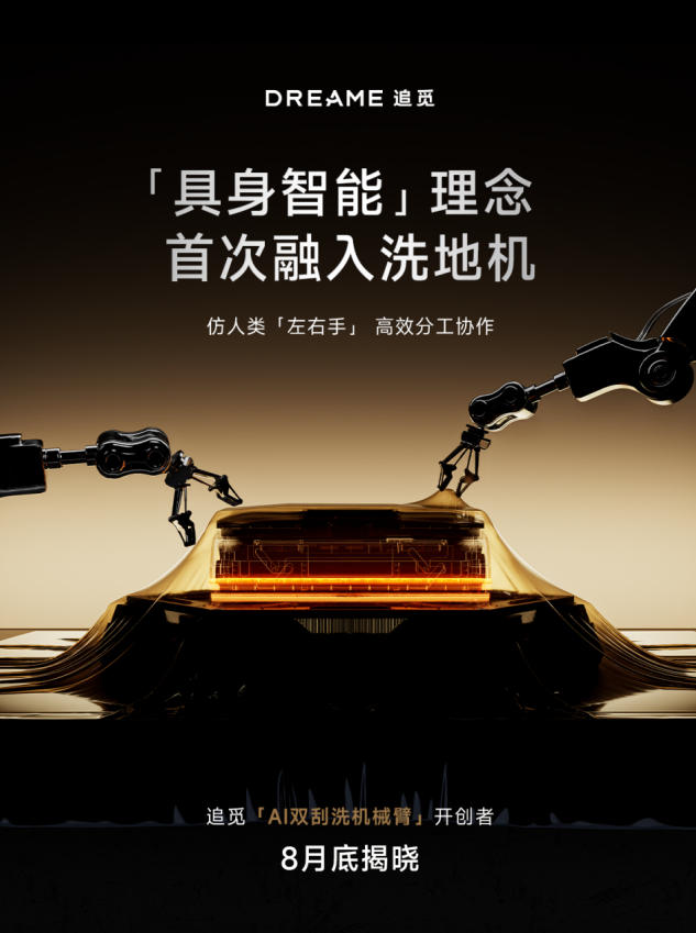 这款搭载AI双刮洗机械臂、平躺厚度仅9.85cm的追觅洗地机预计在8月底正式发布,有望为消费者带来更高效、更彻底的清洁体验。上述信息来自外观物料与已公开资料,最终外观与参数以追觅官方发布为准。